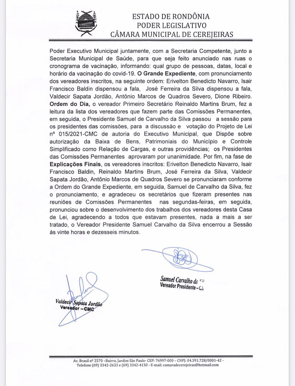 Ata da 3° sessão ordinária.
