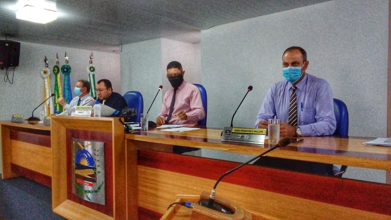 Mesa Diretora - 2° Secretario Elói Ronsani, 1° Secretario Reinaldo Brum, Presidente Samuel Carvalho, Vice-Presidente Isair Baldin.