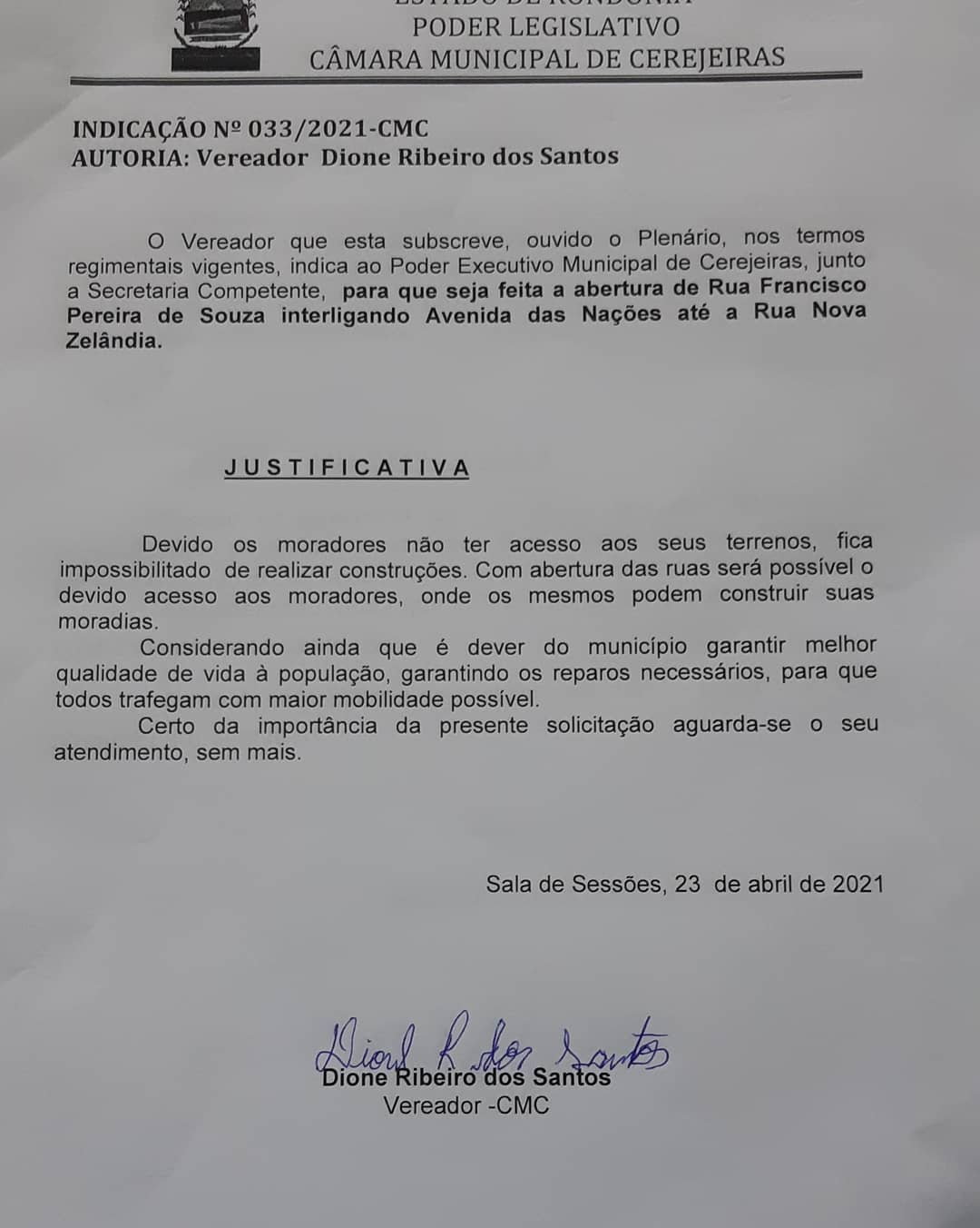 Indicações N° 033/2021