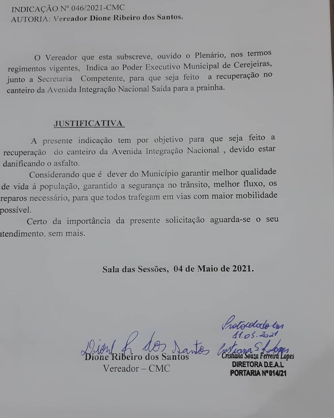 Indicações N° 046/2021