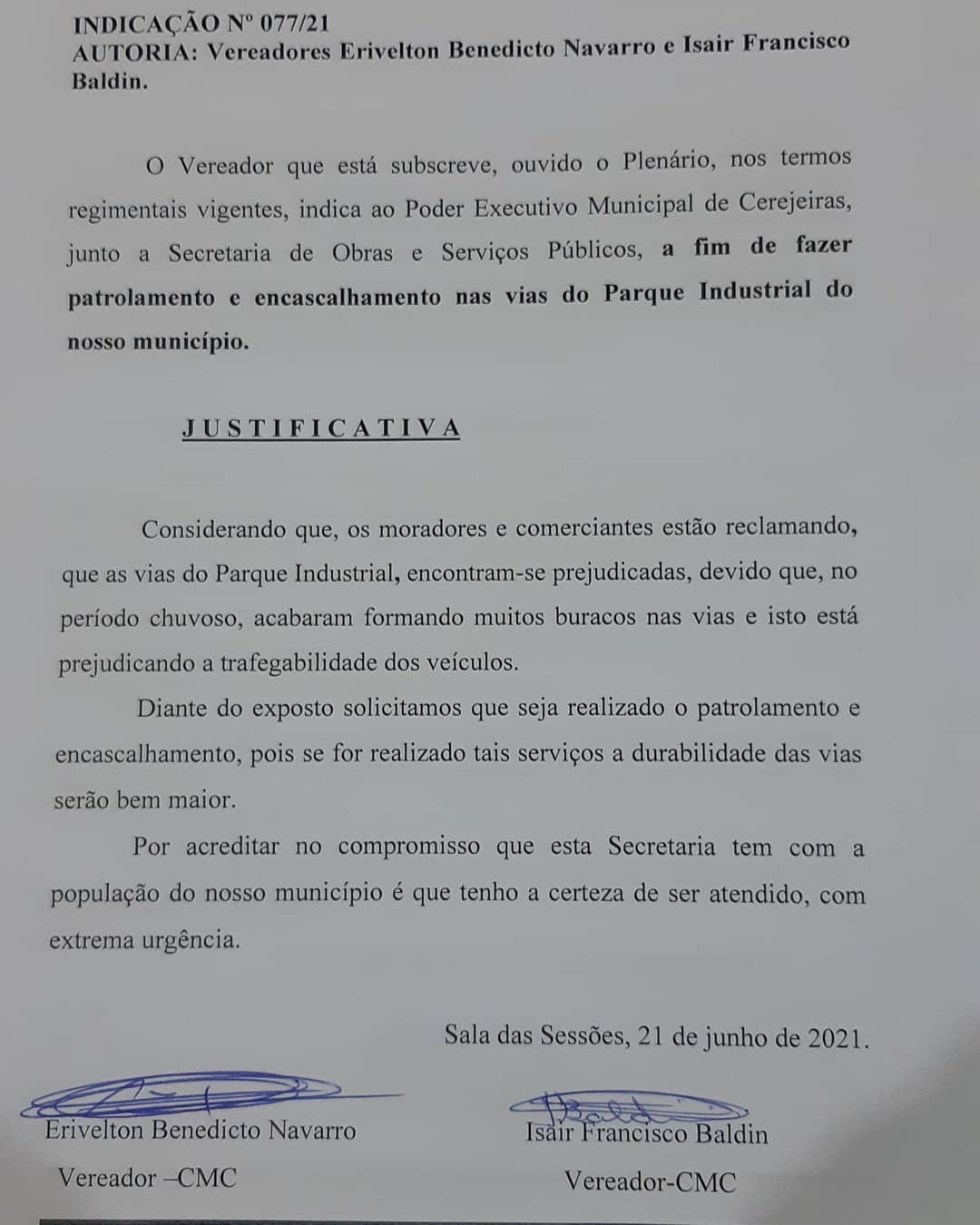Indicações N° 077/2021