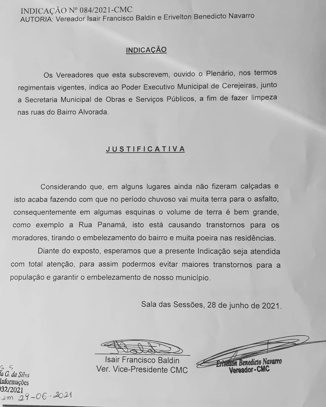 Indicações N° 084/2021
